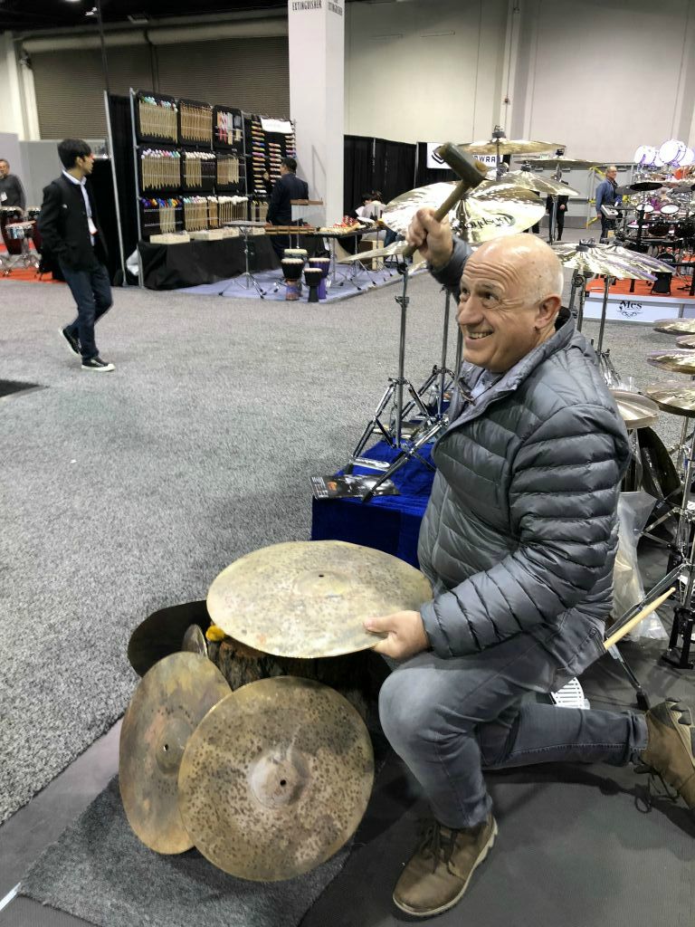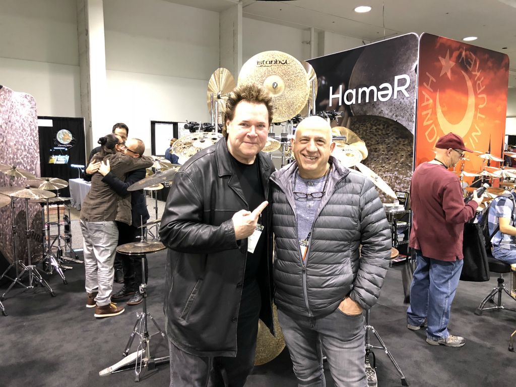 Avec the big boss Sabian , Andy Zildjian. Et oui, Son feu papa Robert Zildjian qui a quitté son feu frère Armand Zildjian pour monter sa propre marque au Canada (c'est comme ça chez les turcs!) a trouvé le nom SABAIAN en réunissant les deux première lettre de chacun de ses tois enfants. SA pour Sally, BI pour Billy et AN pour Andy ici présent. Billy, fâché ,a quitté la marque.