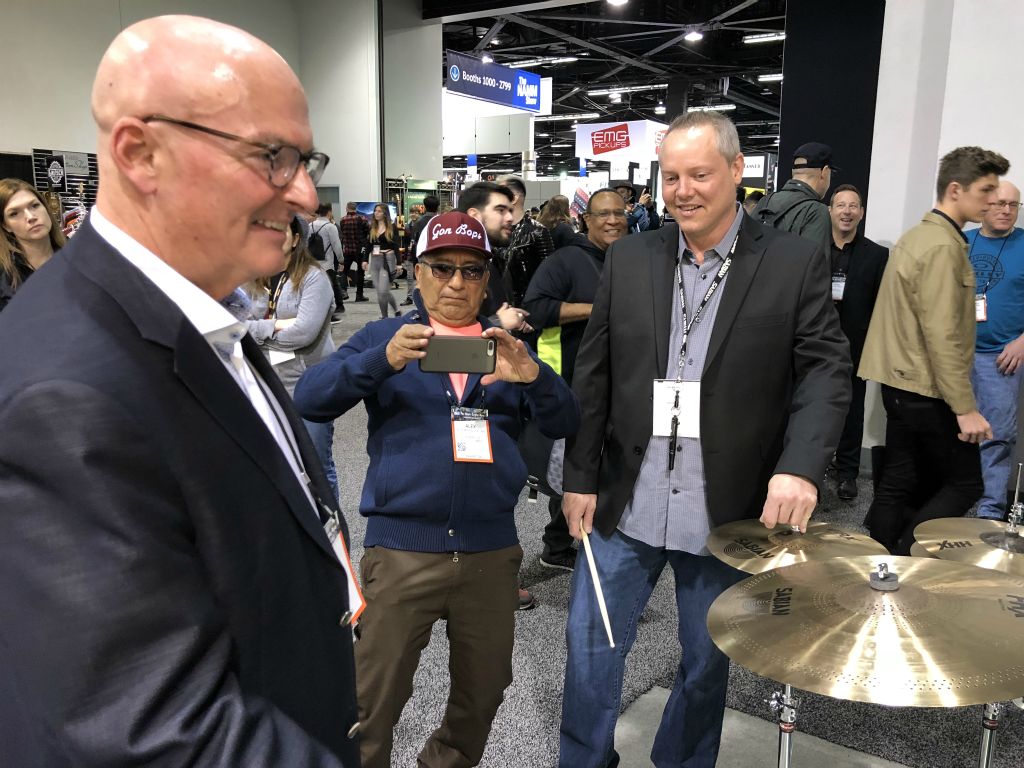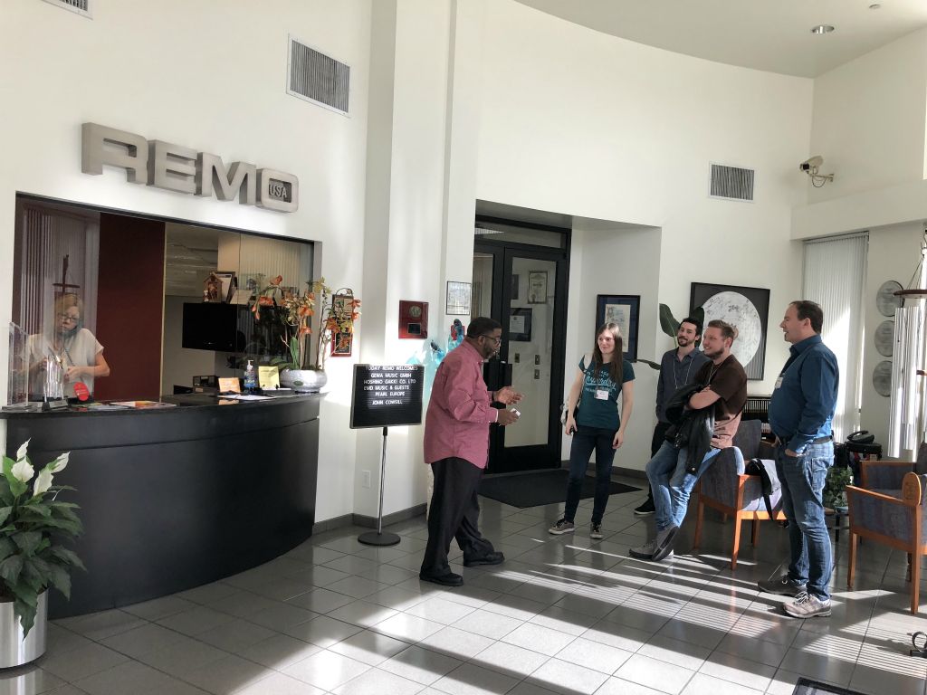 Visite Remo à Valencia CA. Remo a gagné le premier prix de l'innovation au Namm 2018 pour ses Colortone
