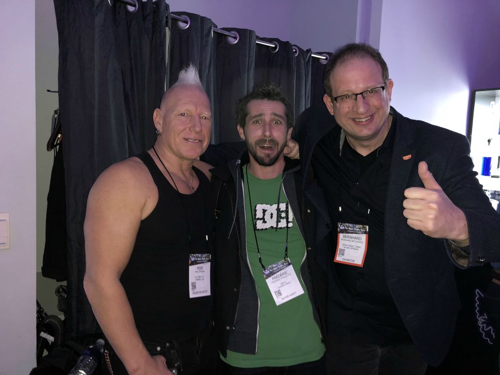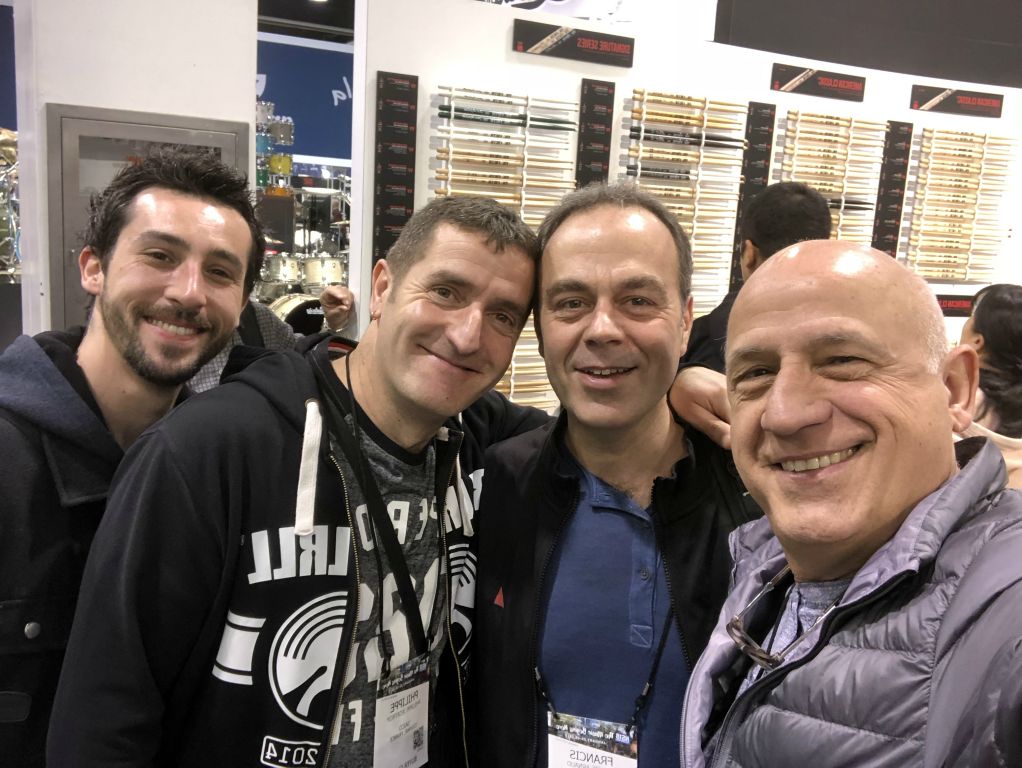 Rencontre devant le stand Zildjian avec Véronique Bulteau (Batteur Mag), Yves Tièche (Zildjian Europe), Gérald Massoubre (Wikidrummers) et le devenu très célèbre Nicolas Viccaro