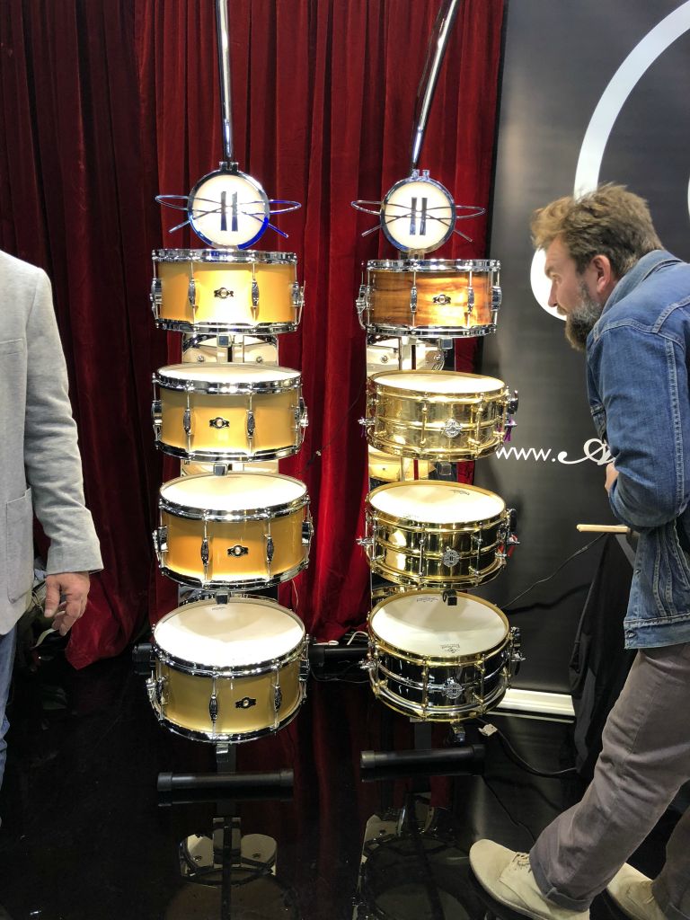 IMG_6017Des caisses claire laiton, bronze, alu, alu gravé, ciuivre, acier, érable... La vôtre est forcément là! En présence de Philippe Jeoffroy et Francis Arnaud