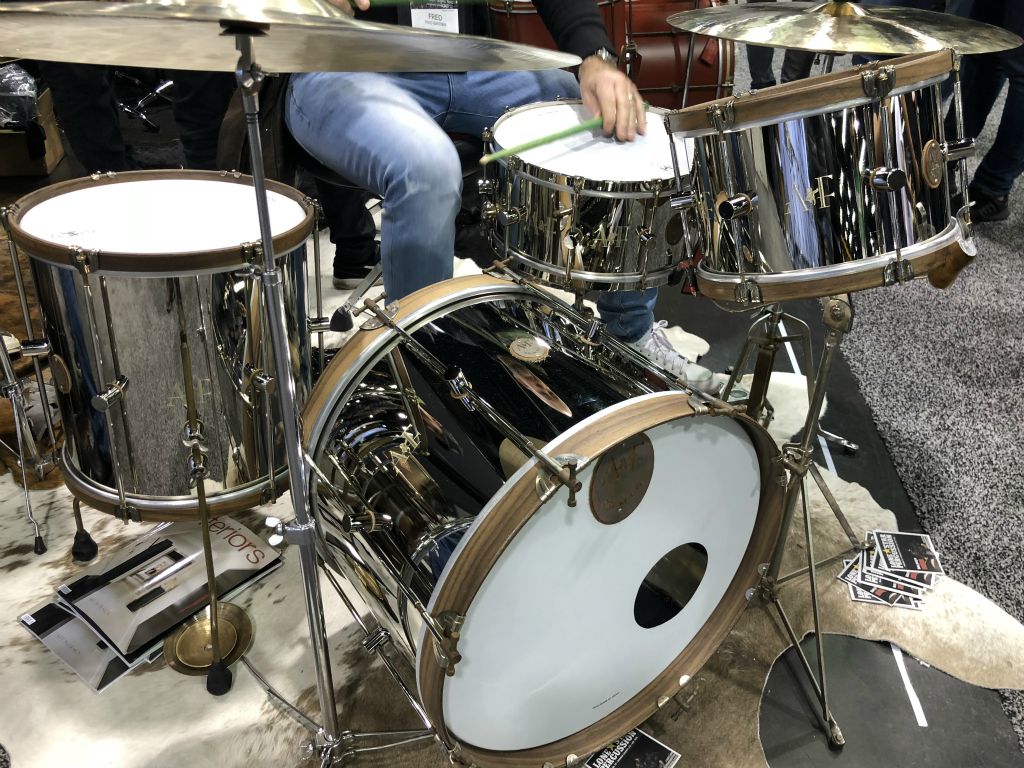 Ce qui nous amené directement sur ce stand A&F qui propose tout une série de kits et caisses claires venue d'un monde oublié!! Fûts en Laiton ou en érable à l'accastillage archaïque ce qui donne à cette marque un look très très vintage.