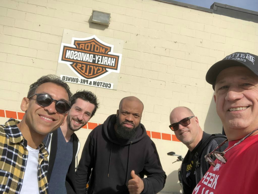 En suite nous avons retrouvé Franck Haesevoets et ses poulains, Jean Philippe Fanfant et Stephane Athus pour une série de photo. Première visite, le magasin Harley " Bartel's" où notre johnny nationnal y trainait ses santiags!!