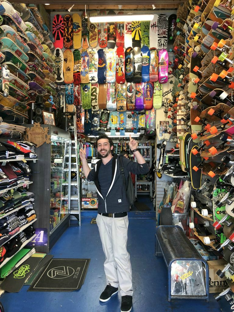 Reportage photo Gewa à Venice Beach. Fred n'a pas pu s'empêcher de taxer un skate à un sympathique californien !!