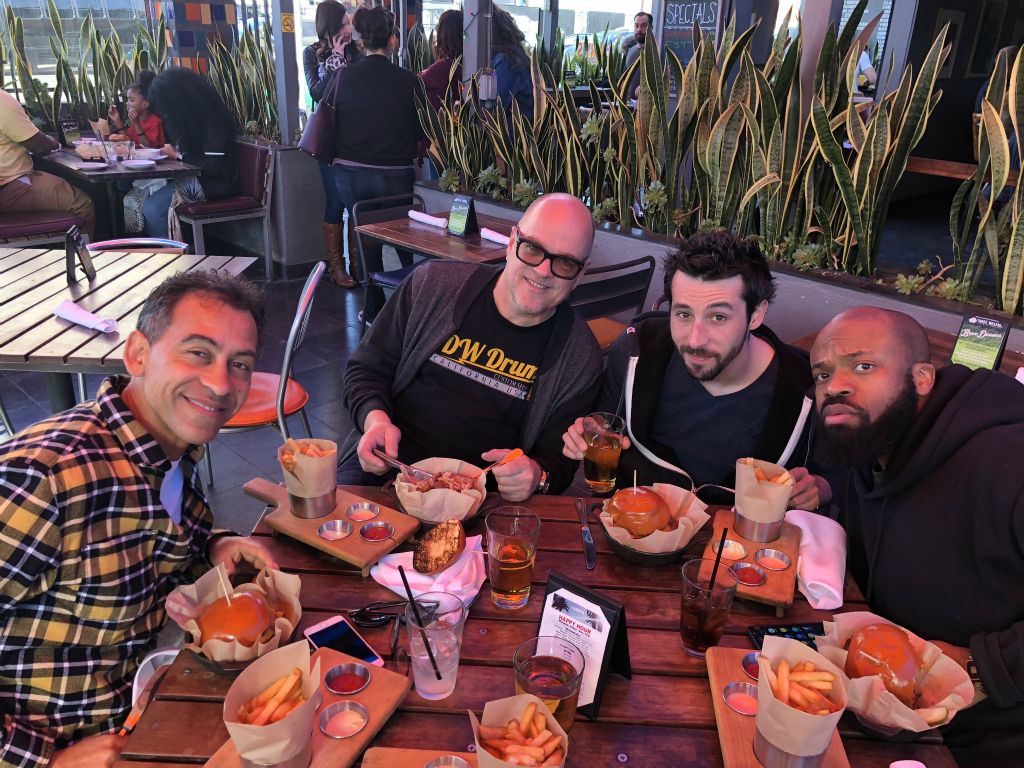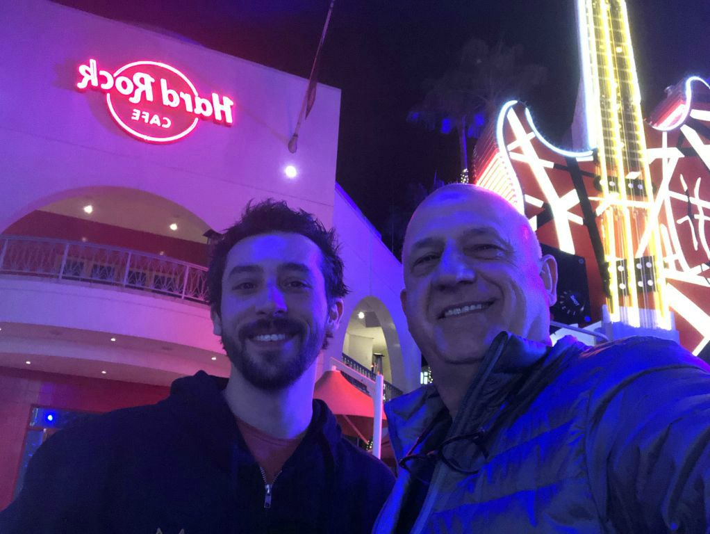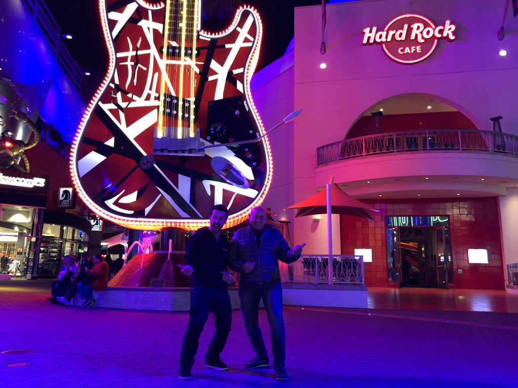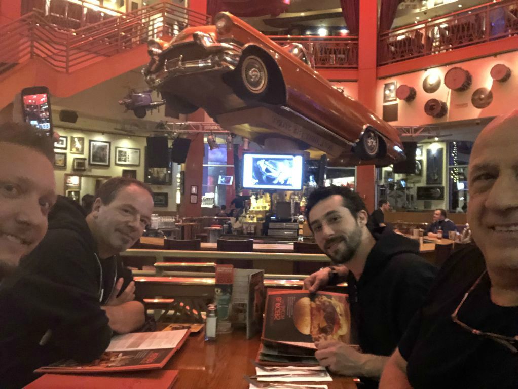 Dernier soir, dernier diner à Universal Studio au Hard Rock Café, en compagnie de Gabriel Lorens et Koen Herfst l'organisateur du drum festival hollandais HERFSFEST