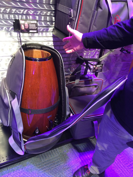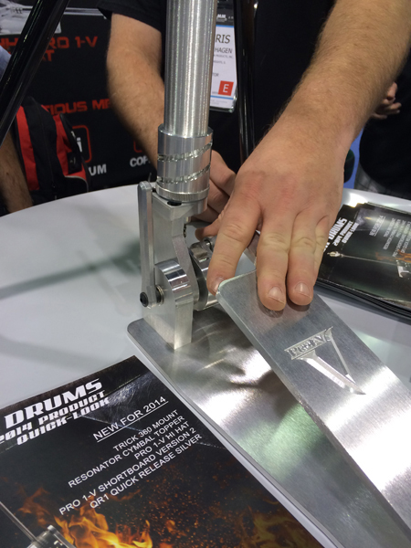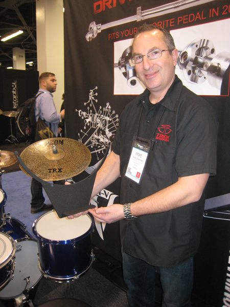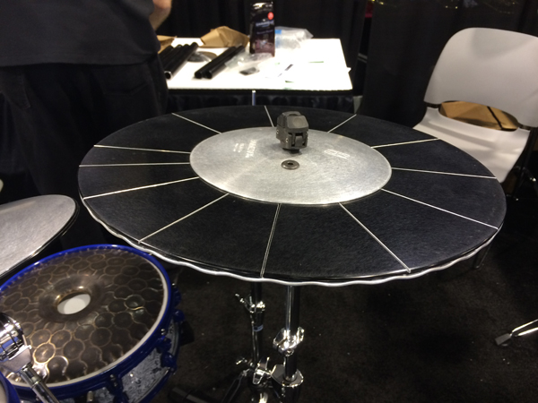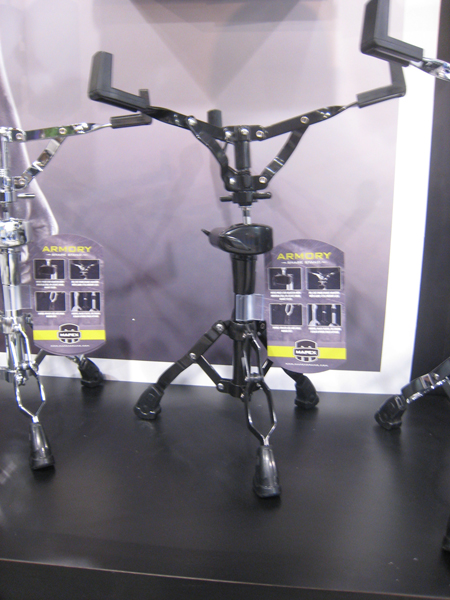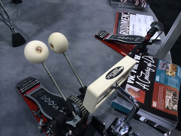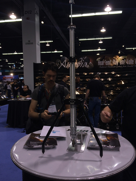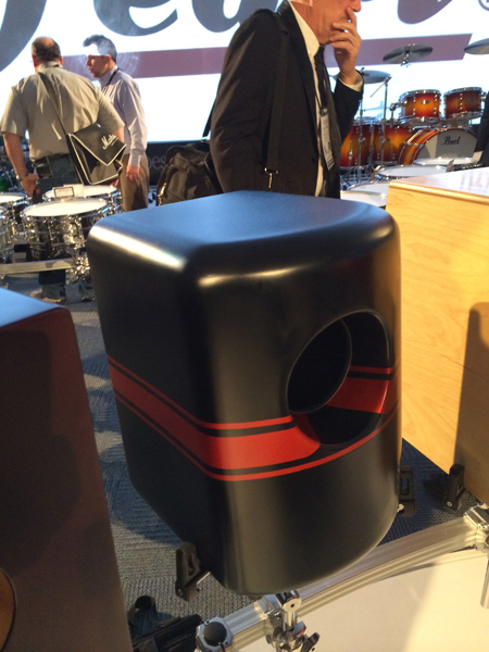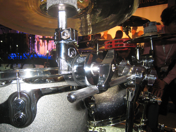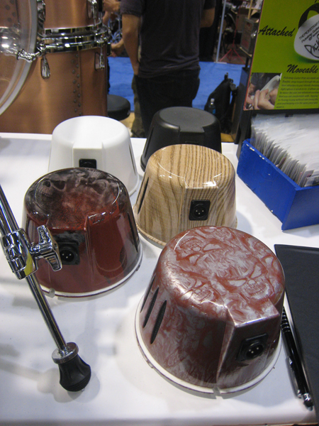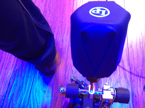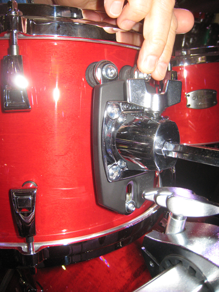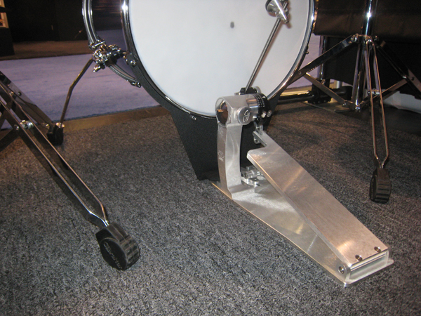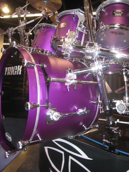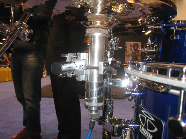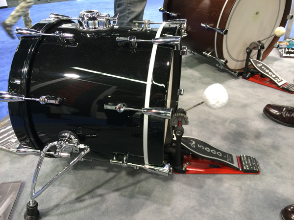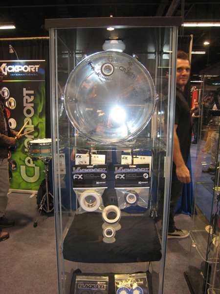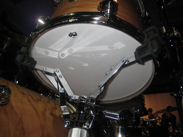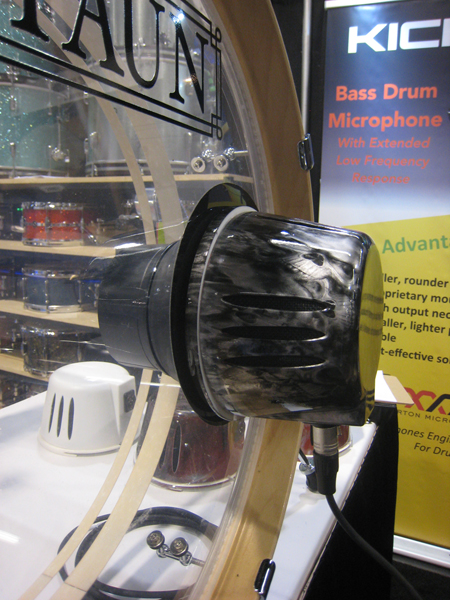 Morton Kick Bass Drum System. Sub-kick qui se glisse en un clin d'oeil sur un Kickport. C'est, dixit l'exposant, beaucoup plus efficace que Yamaha.. Mais il n'était pas possible de l'essayer... Nous en attendons un pour le tester. À suivre !