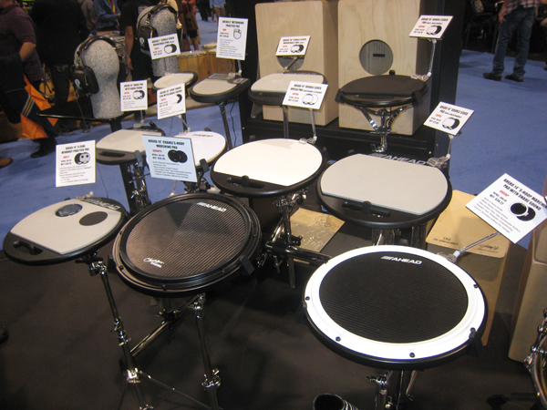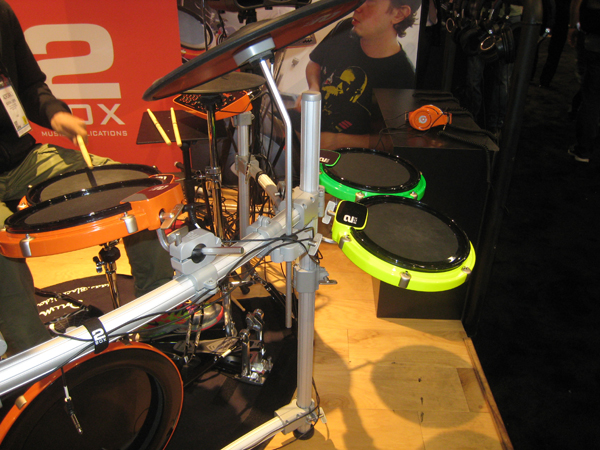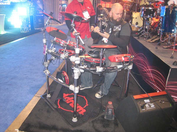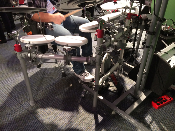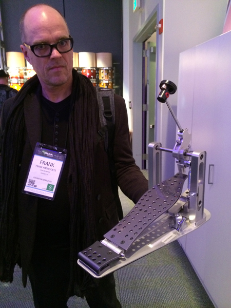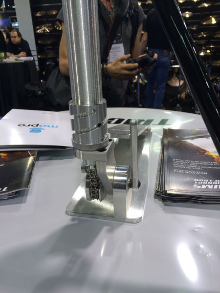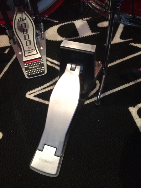 Ce que je considère comme le produit de l'année, le KT-10 Kick Trigger Pedal. Il s'agit en fait d'une pédale équipée d'un trigger et d'un système mécanique qui offre la sensation et le toucher d'une vraie pédale de grosse caisse. Les intérêts sont, la place optimisée dans les pieds, le gain de temps à l'installation et l'efficacité. La tension du ressort de rappel est réglable. Plus de souci de pad qui glisse ou bringbale dans tous les sens. Ce joujou est un produit Roland bien sûr! Bientôt dispo mais il faudra attendre avril ou mai.