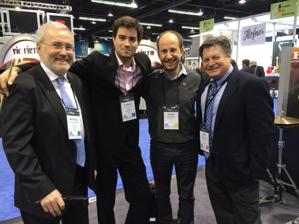 Patrick Maillard (Directeur Gaffarel), Thibaud Coutansais (Chef produit Zildjian chez Gaffarel), Régis Bravi et Andy Schlosser