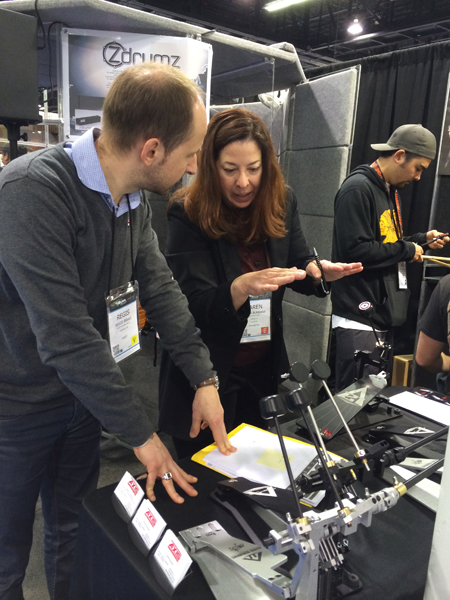 Karen Blashaw de Axis Percussion nous présente ses nouveaux modèles et nous promet de mieux nous livrer !