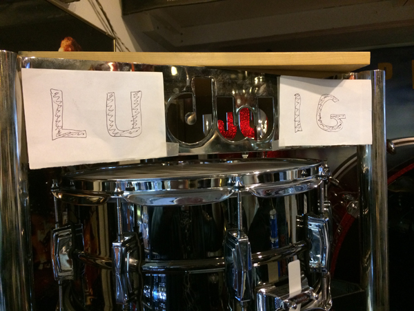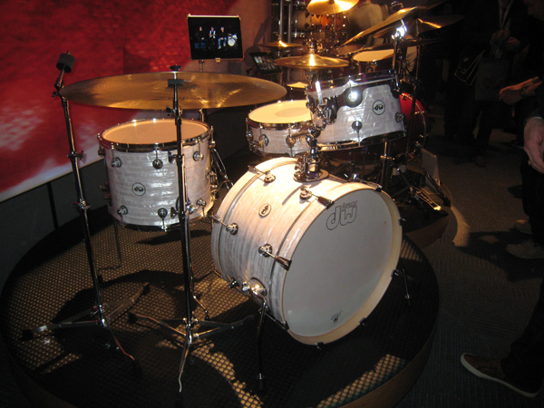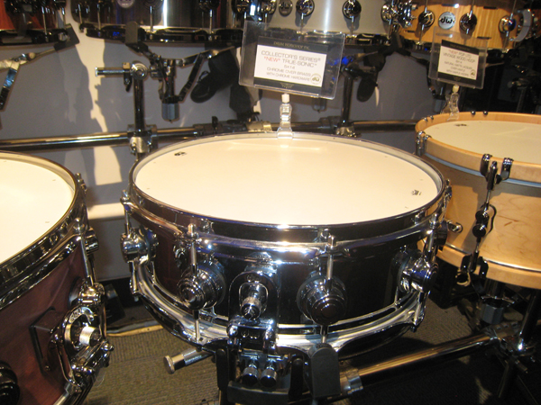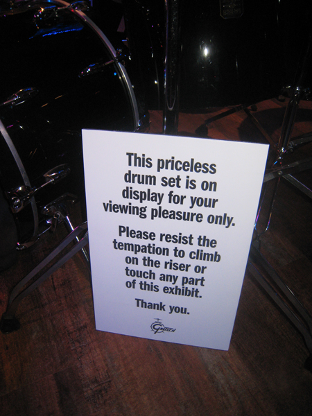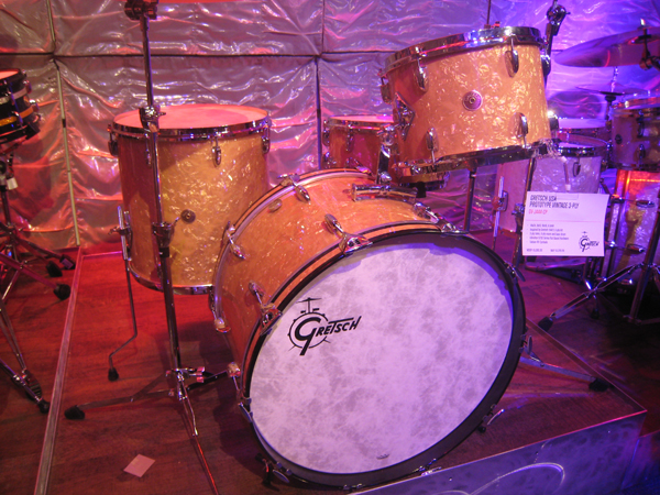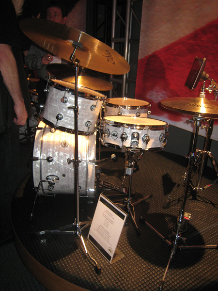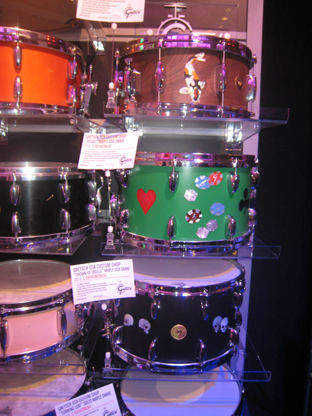 Mais oui, sont kit légendaire (le vrai!) était exposé but, don't touch! mais je n'ai pas résisté à tapoter doucement... malgré que la Baguetterie soit le plus gros revendeur Gretsch, je me suis fait remettre à ma place !