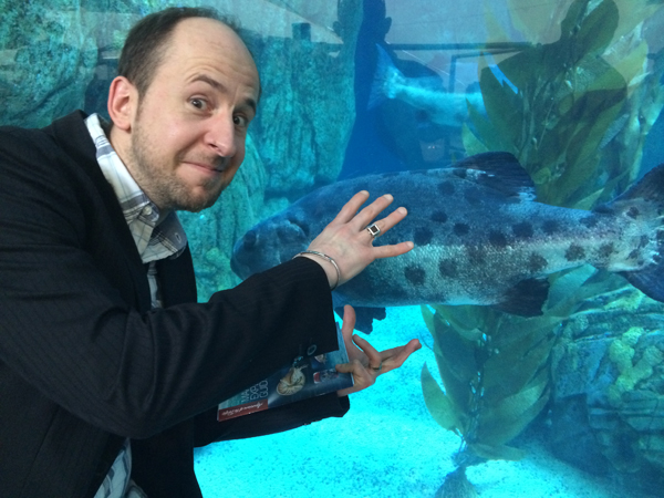 Là on vient d'attraper un gros poisson dans l'aquarium de Long Beach