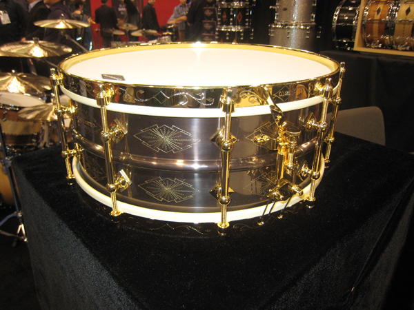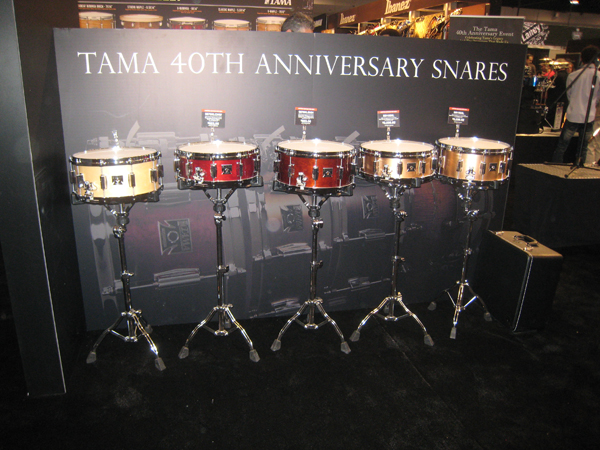 Pour commémorer ses 40 ans, Tama a sorti tout une gamme de très belles caisses claires vintages avec le logo du début que les plus de vingt ans reconnaitrons .