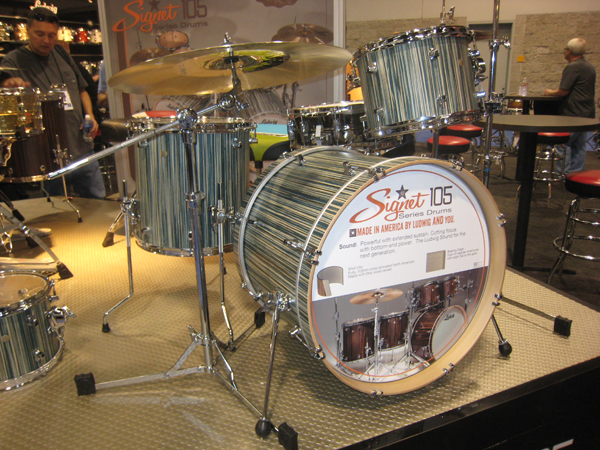 Ludwig Signet 105 "Made in America by Ludwig ...and You!". Pour ceux qui n'ont pas compris, ce kit érable est fabriqué chez Ludwig USA et livré en kit à monter vous même. Ludique et économique puisque le coût s'en trouve réduit de 4 à 500 euros! Je vous vois venir... Certain vont nous demander de leur monter? Pas de souci!