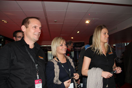 jeroen Ravesloot (DG Roland Europe) agréablement accompagné par le staff féminin Roland Europe