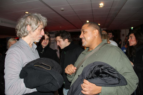 Bon allez! un petit "passe droit" pour la star. Un petit coin planqué bien au chaud et une bonne clope en compagnie d'Antonio Morais.