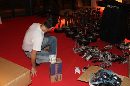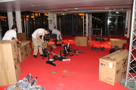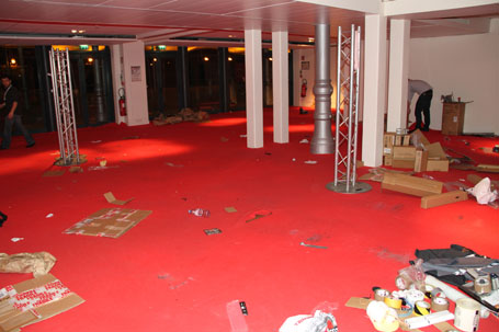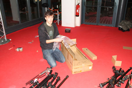 Ouf !! 19H on commence le démontage car il faut avoir plié et tout reconditionner dans les cartons d'origine les 50 kits electros et tout charger dans les camions !!