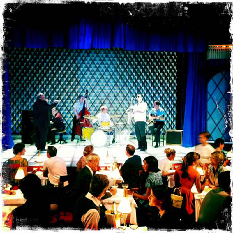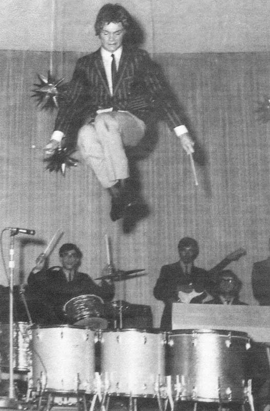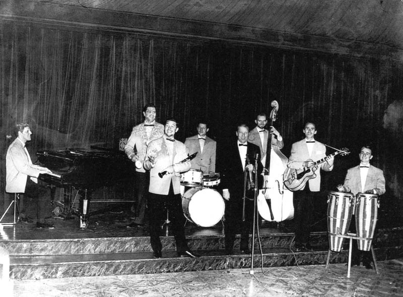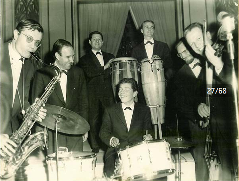 Sur cette photo prise dans les années 60 au Sporting Club de Monaco, André Ceccarelli derrière la batterie, Son Papa Joseph Ceccarelli aux côtés de Claude François et des fameuses tumbas Asba.