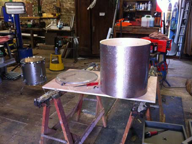 Il a donc fallu dézinguer 3 toms basse dont deux que nous avons consolidés et solidarisés pour que l'acteur ne se blesse pas.