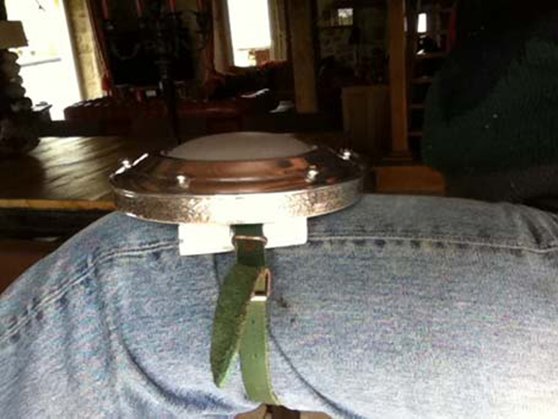 J'ai donc pioché dans ma collection de vintages mais certains kits me manquaient. Nous avons donc recherché et trouvé certaines vieilleries qu'il a fallu remettre en état. Notre ami Jean Louis Pujades (EMILLE & IMAGES) nous a prêté une paire de vieilles congas Gon Bops en triste état pour lesquels il aura fallu leur refaire une santé. Il fallait aussi un "Papa Mama" (tampon de travail sur genoux de la marque ASBA introuvable aujourd'hui) créé de toute pièce avec des enjoliveurs de tuyaux de cheminée, un peu de bois, de la vieille molesquine et une vielle laisse de chien pour la sangle.