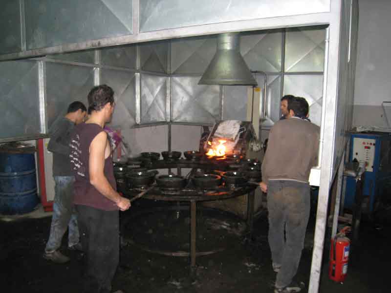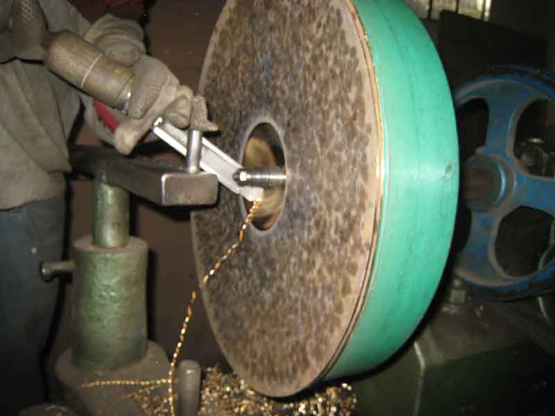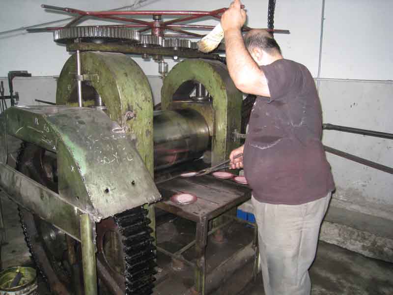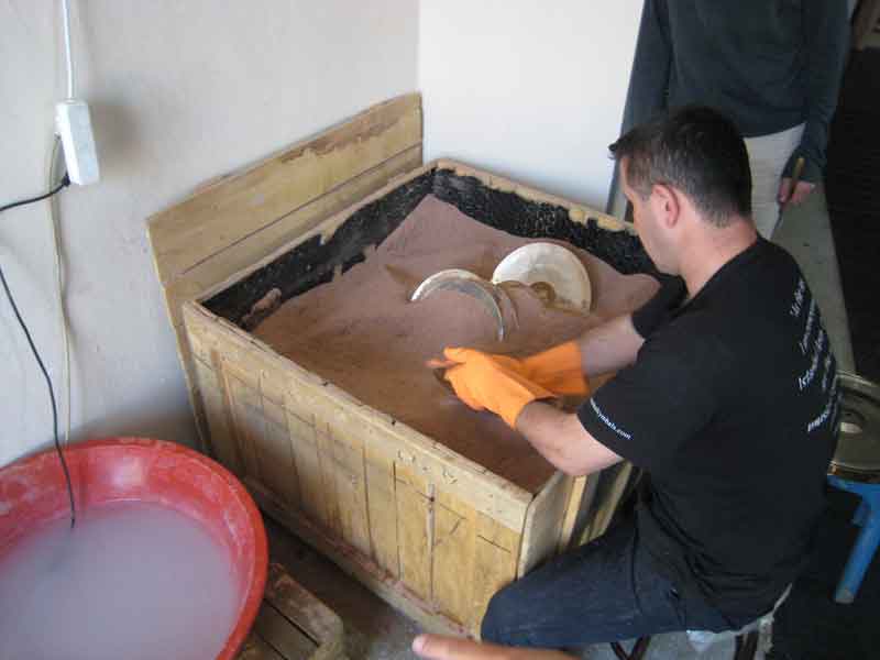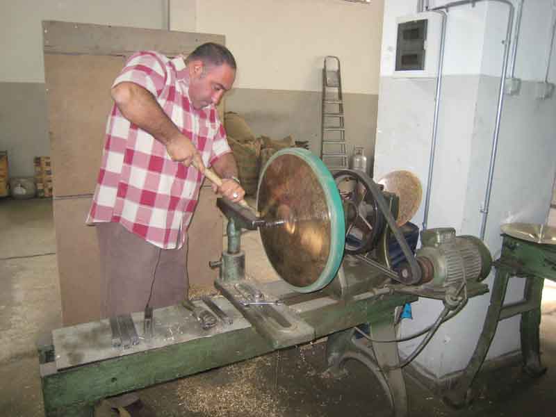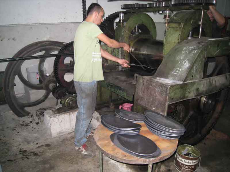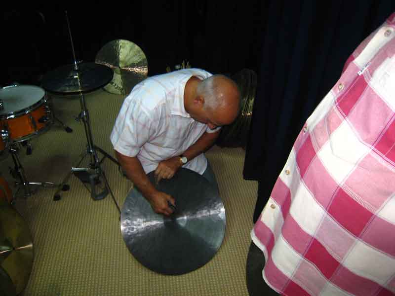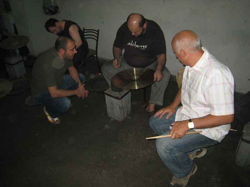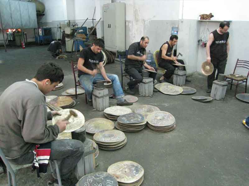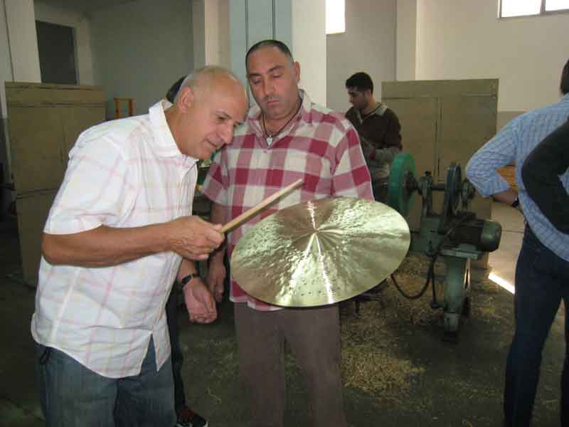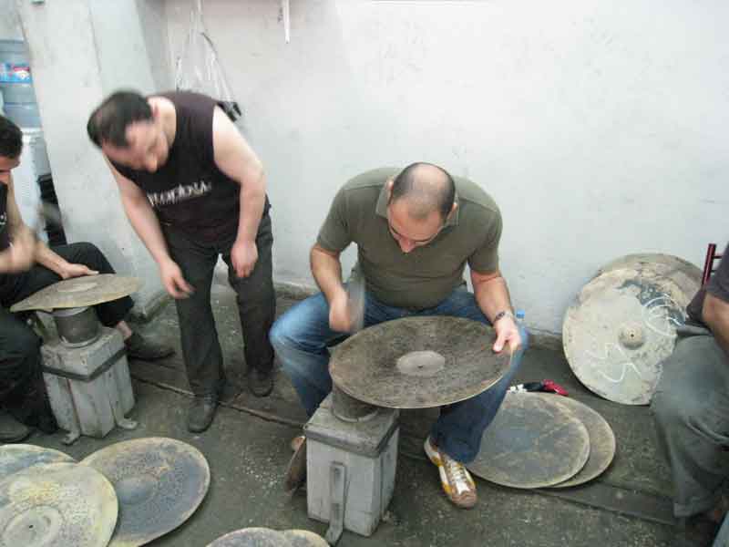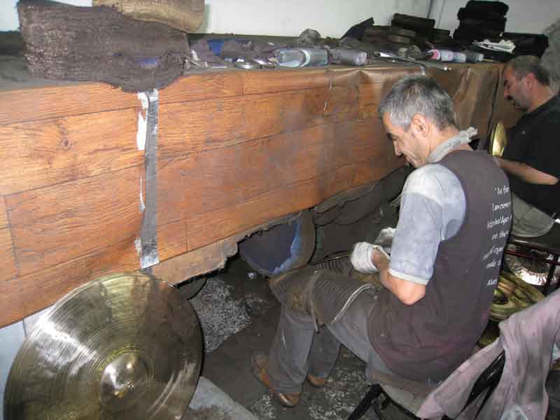 Ici Arman nous fait une démonstration de son habileté à marteler les cymbales. Et oui, avant d'être le boss il a fallu qu'il passe par tous les stades de fabrication.