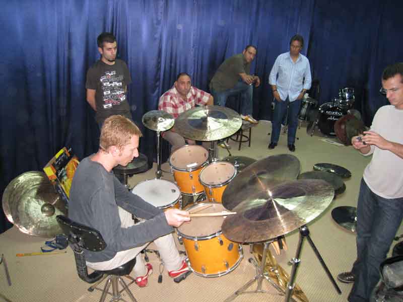 Et avant d'aller au lit pour être en forme le lendemain matin, nous passons quand même faire un tour dans l'auditorium ou Arman et Sarkis nous avaient préparé quelques 500 des meilleures cymbales de leur production.