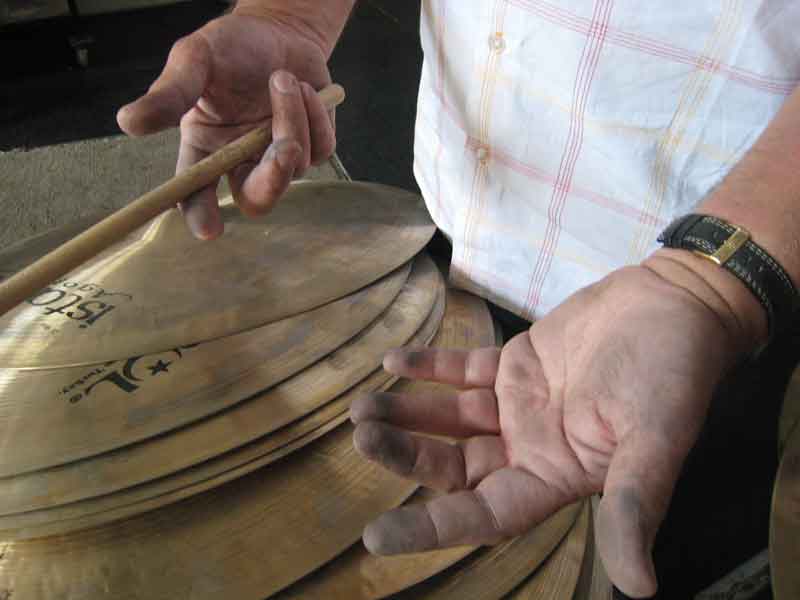 Le but de notre visite : Venir choisir un lot de cymbales "rides" parmi des centaines de modèles fraîchement fabriqués à notre attention.