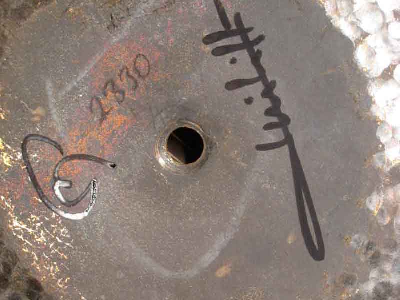 Les galets sont ensuite réchauffés à blanc dans un four spécial et laminés jusqu'à obtenir ces galettes posées au sol en attente d'être transformées.