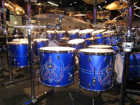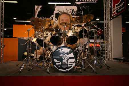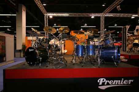 Passons aux choses sérieuses ! Le stand PREMIER qui contredit l'info comme quoi PREMIER arrêterait la production de batteries pour se consacrer aux percussions classiques.. FAUX ! et pleins de nouveautés.