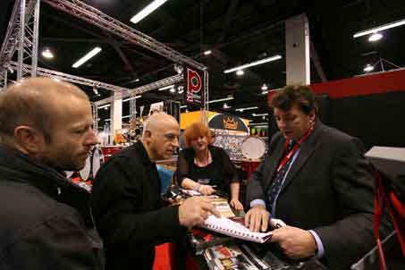 Le but de cette visite annuelle est dans un premier temps de rencontrer nos fournisseurs (fabricants, commerciaux, bigs boss, artistes internationaux...) et aussi d'y trouver des perles rares comme cette année la pédale de grosse caisse DRUMNETICS , les cymbales HAMERAX ou les batteries FORD dont vous entendrez bientôt parler dans la presse spécialisée. Nous sommes aussi très fiers d'avoir été choisis comme distributeur exclusif de la célèbre marque de percussions à main, RYTHMTECH.
