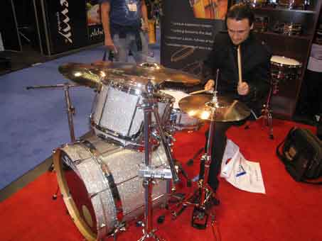 C'est en compagnie de nos invités Christophe Deschamps et Peter Cushin que cette année nous avons visité le NAMM édition 2008 qui s'est déroulé comme à son habitude à Anaheim (Californie) au CONVENTION CENTER. L'exposition, de taille égale à celle du MUSIK MESSE de Frankfort, se différencie quelque peu du fait qu'elle se déroule aux Etats Unis ce qui en fait le seul endroit au monde où il est possible de découvrir des nouveaux produits artisanaux américains comme TRICK, OCDP, FORD, HAMERAX, d'une qualité irréprochable fidèle aux produits « made in USA ». Pour mémoire, il y a une trentaine d'années, on y a vu naître des marques maintenant célèbres comme DW, VATER, AXIS, EVANS, AQUARIAN, AHEAD etc.