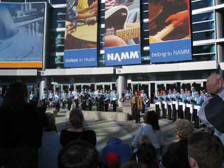 La fanfare accueille les visiteurs avant l'ouverture des portes du NAMM