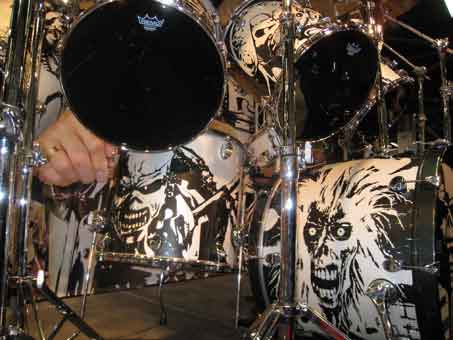 La"vraie" batterie de Niko McBrain de Iron Maiden entièrement peinte à la main. Pièce unique. A quand une édition commercialisée ?