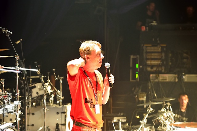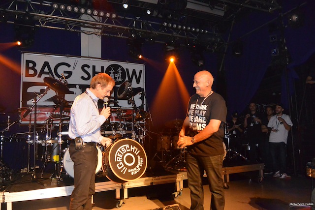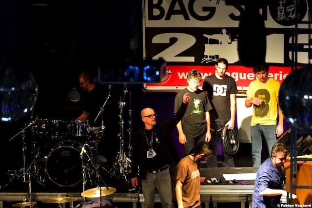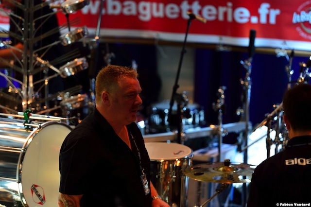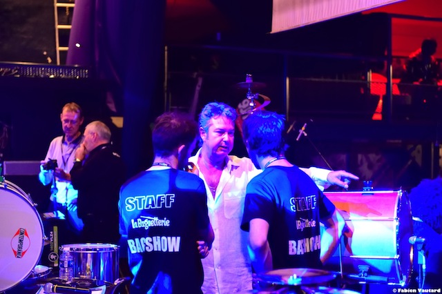 Franck Drouillac, le maître de cérémonie de toutes les BagShow depuis 2000, gère à merveille cette édition du plus grand festival de batteurs. Il est temps du briefing des artites !