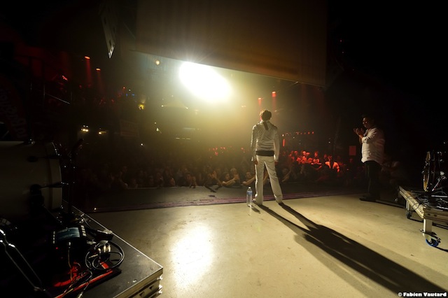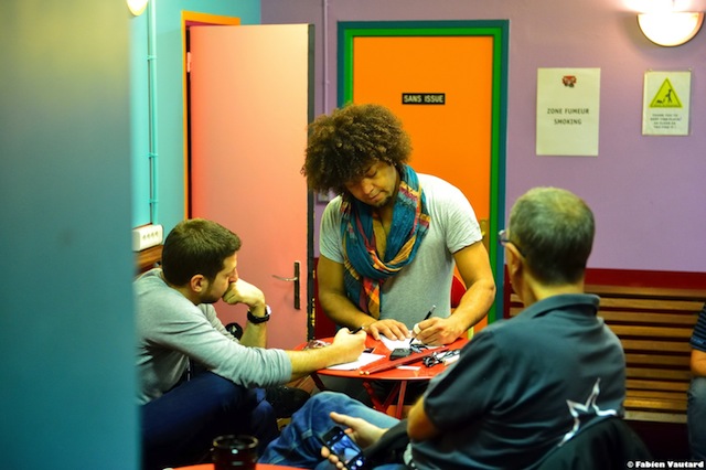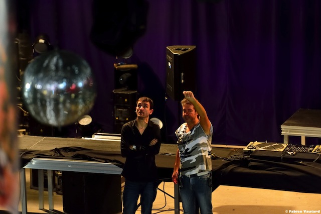 Cédric le régisseur de la Machine, que nous remercions pour son efficacité, organise les plateaux des artistes avec Franck Drouillac