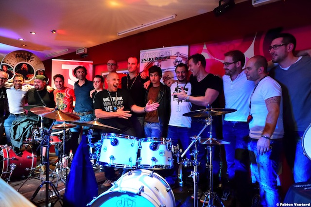 Pour clôturer cette fabuleuse édition 2013 de la BagShow, Mike Mangini a appelé à le rejoindre pour un Jam sans précédent, Damien Schmitt et Thomas Lang