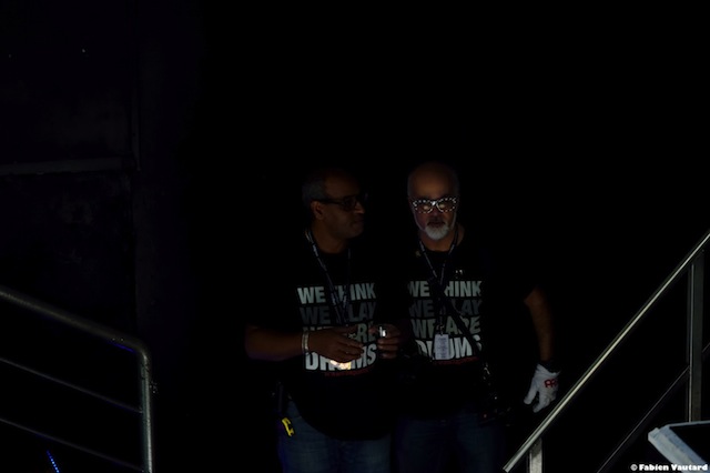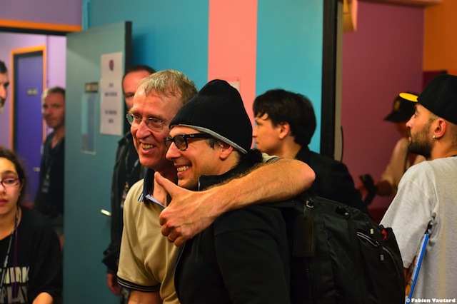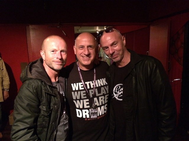 Lionel Bouscaillou et Mike Mangini dans les loges
