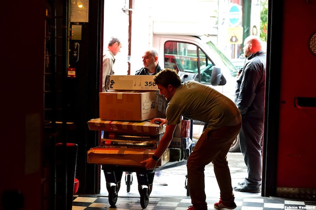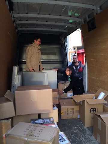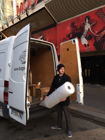 Dimanche 7h du matin ! Ça ne rigole plus, on a 4 heures pour monter la scène et tous les kits avant l'ouverture de la Bag'Show 2013 ! |