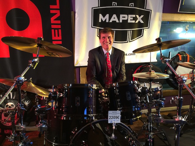 Christophe Ptak (Dir. commercial SAICO) veut son stand MAPEX, LUDWIG et MEINL résolument Rock !