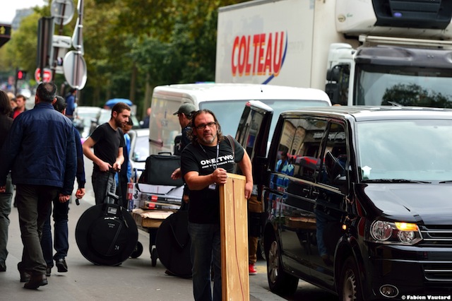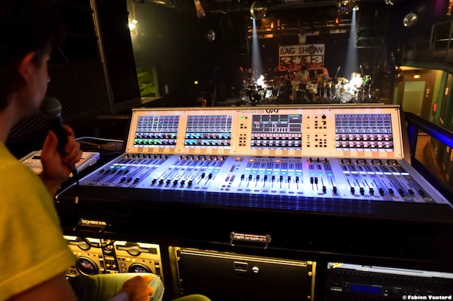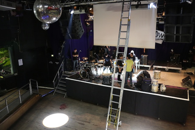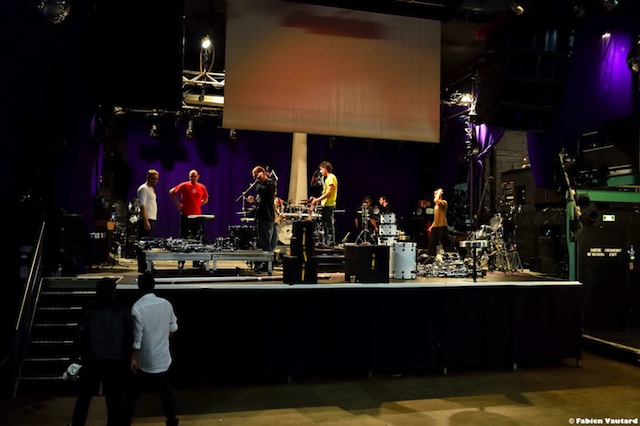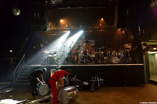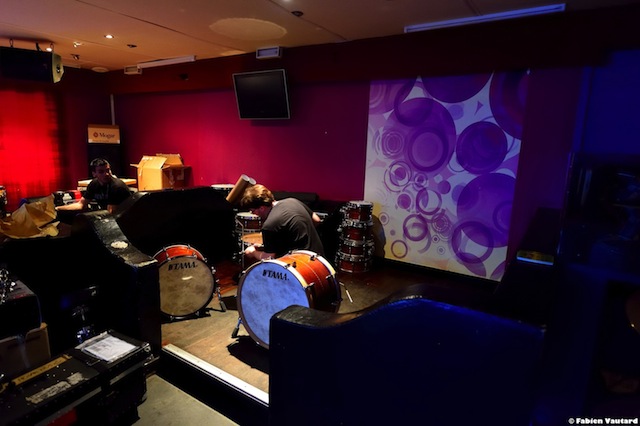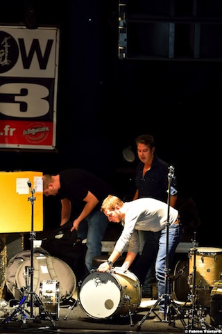 Nicolas Viccaro installe le premier sa Gretsch Brooklyn, Thierry Lalite check l'écran géant