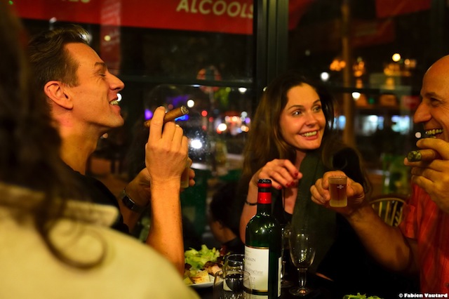 À la fin du diner, le traditionnel cigare que Philippe Lalite partage avec Thomas Lang et son amie