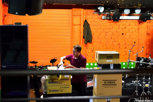 Philippe Woehling de BAHIA STEEL prépare le matériel CONTEMPORANEA pour une surprise