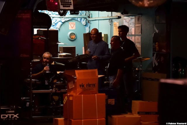 Un très agréable moment de partage et de convivialité avec Emmanuelle Caplette qui n'est pas réstée indifférente devant l'impressionnante collection de vieilles Zildjian K de Philippe Lalite.