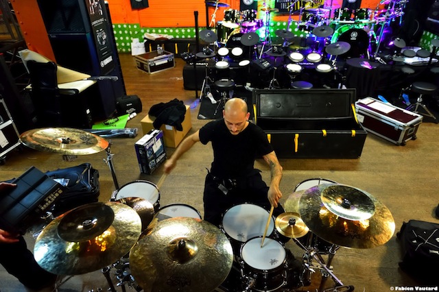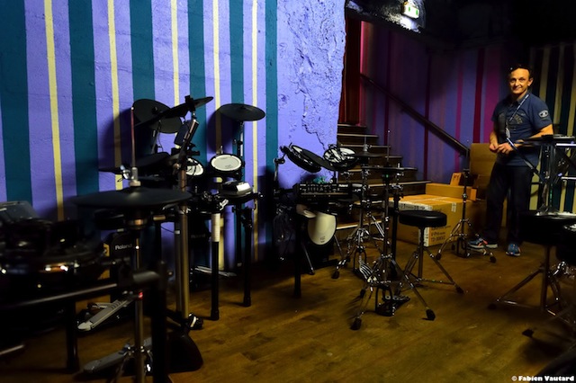 Merlin Ettore règle sa batterie avec laquelle il fera son show !