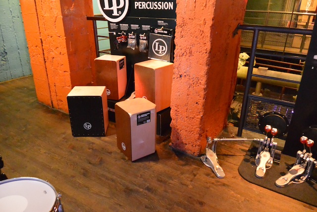 Cajons MEINL Artisan et en arrière plan la sublime LUDWIG Keystone Saumon