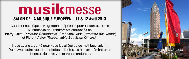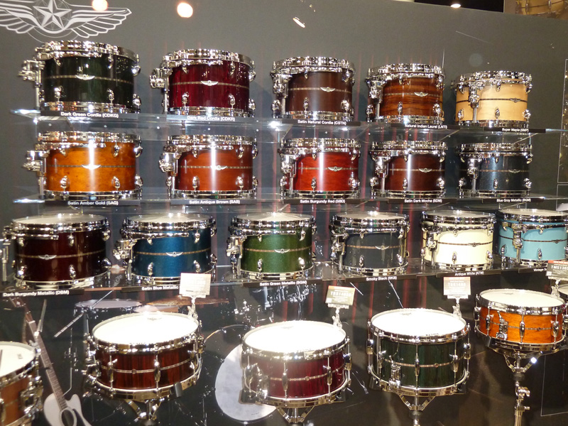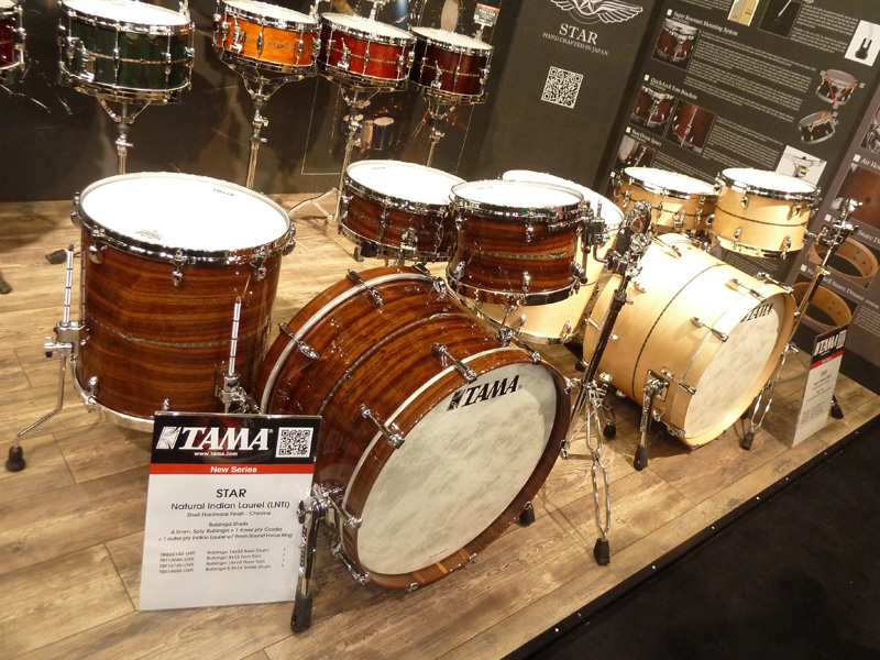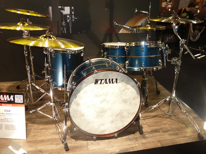 Coup de coeur de ce salon Music Messe 2013 : La nouvelle série TAMA STARS. Batteries Customs avec un très vaste choix de finitions et de dimensions de fûts. A noté, le nouveau système de suspension de fûts SRMS. |