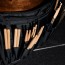 L'intérieur du sac contient huit poches à baguettes, chacune cousue pour accueillir une paire de baguettes de n'importe quelle taille. Chargez ces poches avec des paires de baguettes de poids et de hauteur identiques, ou des paires de diamètres différents si vous utilisez des baguettes de tailles différentes.