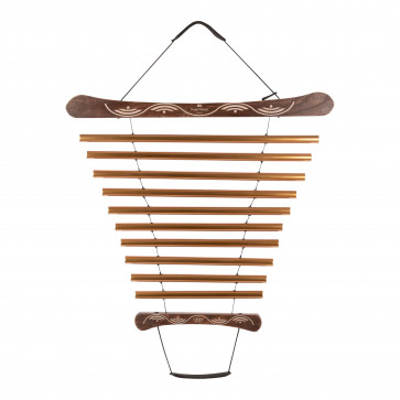 Les tubes sonores sont suspendus à de solides cordons en nylon, centrés dans deux supports en bois de frêne. Les tubes sont fabriqués en aluminium résistant à la corrosion et peuvent être joués séparément ou ensemble.