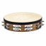 Tambourin bois avec peau de chèvre sélectionnée à la main, 2 rangées de cymbalettes acier inoxydable, Walnut Brown