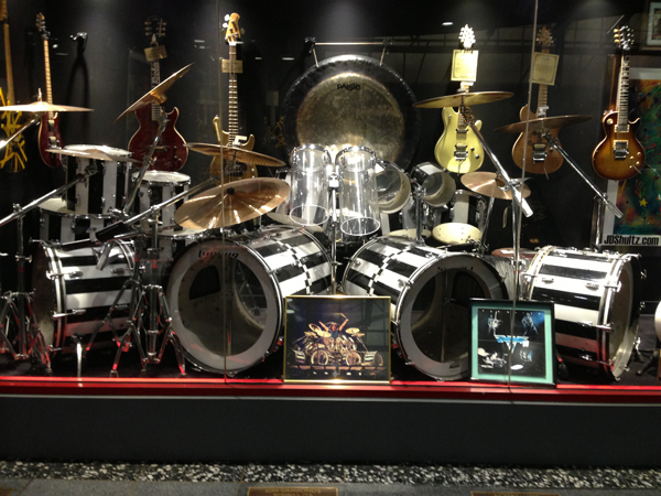 Sur Sunset Bld, les magasins Sam Ash et Guitar Center se font la guéguerre à quelques mètres l'un de l'autre. Dans une des vitrines du Guitar Center est exposée la batterie d'Alex Van Halen conçue pour le "Fair Warning Tour" Ci dessus la photo de scène de l'époque et ci-dessous, pour le plaisir des photos du bricolage archaïque de l'instrument mythique.