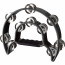Tambourin double demi-lune en plastique avec 2 rangées doubles de cymbalettes, soit 20 cymbalettes au total.
