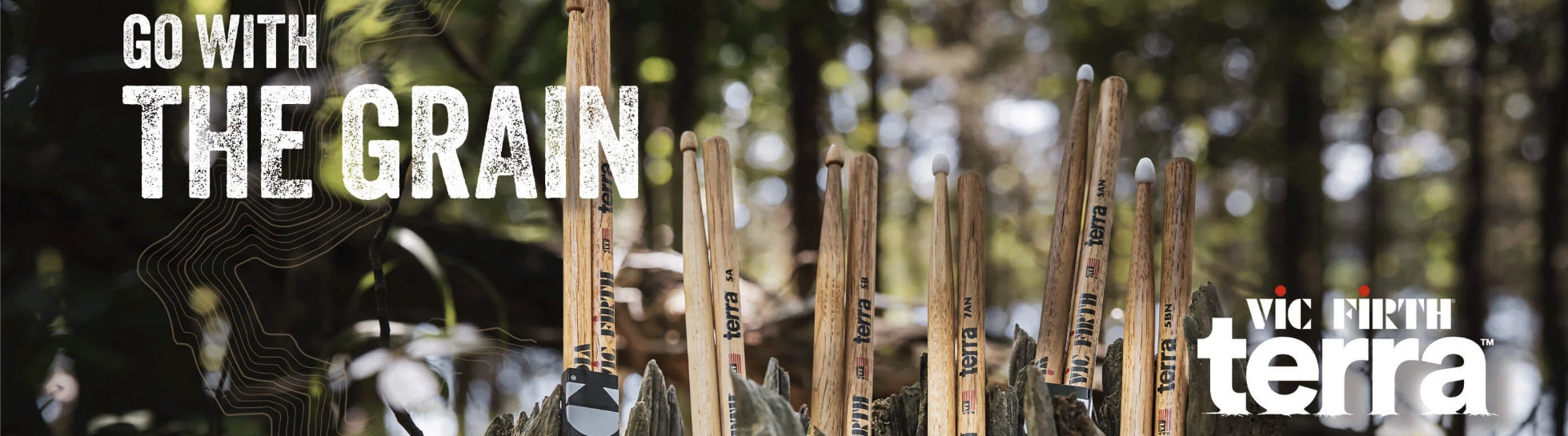 Voici la série Vic Firth Terra™, une célébration de la beauté naturelle dans chaque paire de baguettes et de la connexion que chaque batteur ressent lorsqu'il s'assoit derrière son kit.